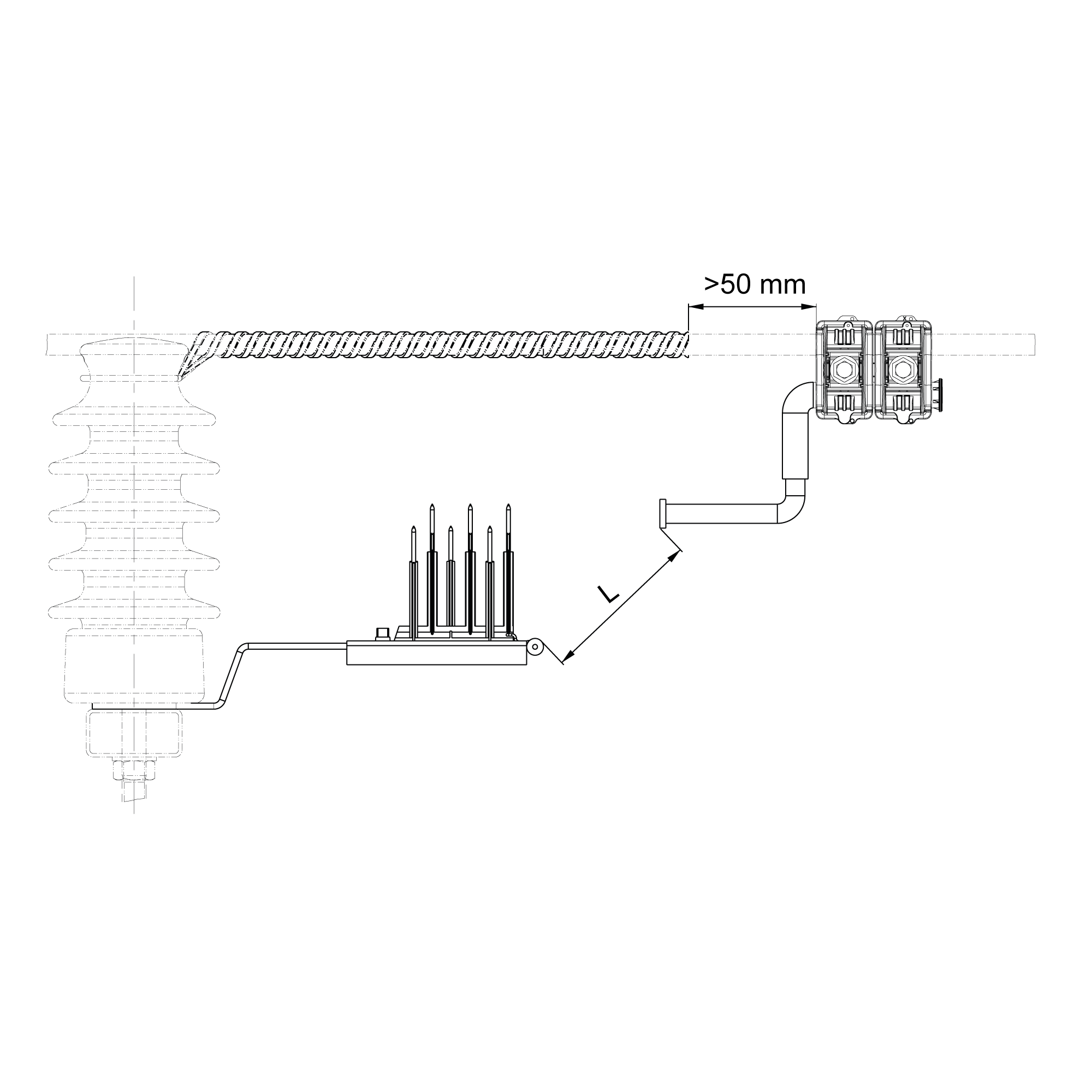 Izmanto kā aizsardzības ierīci no lokizlādes izolēto gaisvadu līnijās. Komplekts ir piemērots uzstādīšanai kopā ar balsta izolatoriem uz traversas. Dzirksteļizlādes spraugas lielums ir regulējams. Īsslēguma strāva: lokizlādes tests – 10 kA / 1 s.
