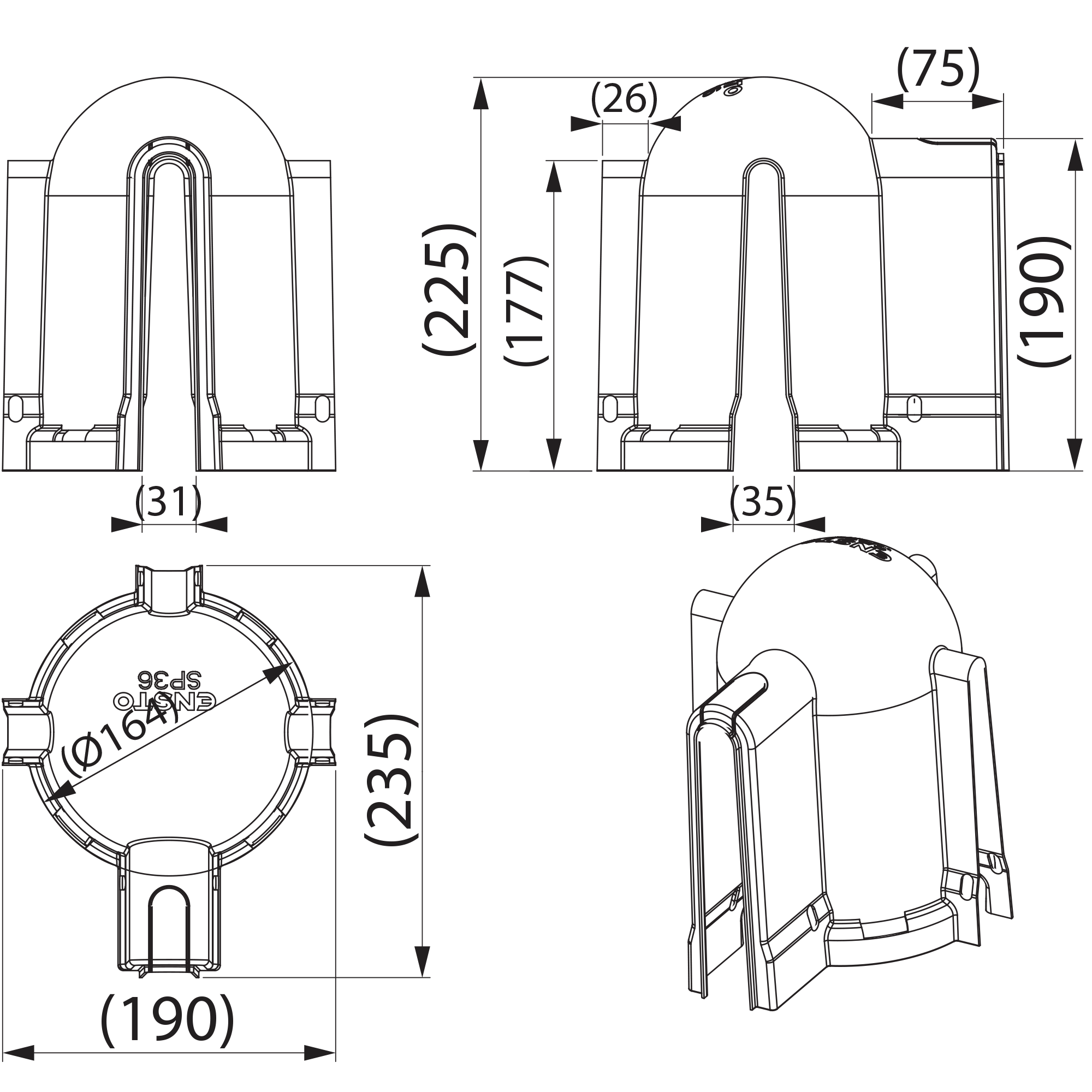 Pielieto izolatoriem, kopnēm un pārsprieguma novadītajiem ar diametru 100 – 180 mm. Var izmantot kopā ar elastīgo aizsargapvalku SP 31.3. Viegla uzstādīšana ar saitēm. Izgatavots no atmosfēras un UV – staru izturīgas plastmasas. Komplektā ietilpst 3 gab.